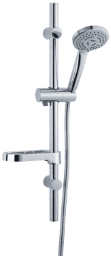 bestehend aus Wandstange 60 cm, 3-fach verstellbare Handbrause mit Antikalk, Durchflussmenge 14,03 l/min bei 3 bar, Seifenschale und Metallbrauseschlauch 150 cm
