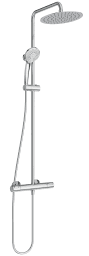 Wannen-Einhandmischer mit beweglichem Auslauf, welcher die automatische Umstellung für Wanneneinlauf ist, Duschstange höhenverstellbar, Regenkopfbrause (ABS) Ø 25 cm, Handbrause (ABS) mit 3 Strahlarten, Kunststoff-Brauseschlauch Silber 180 cm, Gesamthöhe max. 159,2 cm, Gesamtausladung 52,7 cm