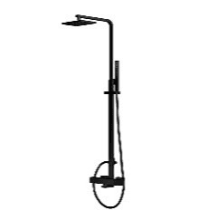 Brauseset mit Thermostatarmatur, mit Regenbrause und Handbrause, mit h“henverstellbarem Gleiter f_r Handbrause, mit schwenkbarem und h“henverstellbarem Regenbrausearm (bei Installation), matt black