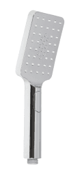 rechteckig, 12 cm, Brausekörper und Strahlfläche chrom, mit Tastumstellung, mit Antikalknoppen in grau, 3 Strahlarten (Brauseregen/Massage/Mixstrahl)