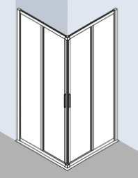 Eckeinstieg mit zwei Schiebetürsegmenten und zwei Festfeldern. Schiebetürsegmenten zur Reinigung nach innen schwenkbar. Hochwertige kugelgelagerte Laufrollen. Halbteile beliebig kombinierbar.