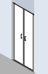 Tür mit zwei Glasflügel, nach innen und außen öffnend. Mit Zugstab. Zum Einbau in einer Nische und zur Kombination mit Seitenwand AQDUJUSWSP++. Mit Bodenschwelle (Höhe 6 mm), oder ohne Bodenschwelle (bodenfrei) installierbar. Höhe 200 cm, Silber Hochglanz, Glas ESG mit Clean-Beschichtung, 4 mm