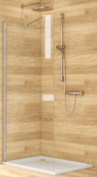 mit vertikalem Wandprofil, 1 Seitenwand, 1 Stütze 30° oder 90°, Echtglas klar 6 mm Links oder rechts montierbar, Höhe Stütze = 2011,5 mm (Oberkante Befestigung Mauerseite)