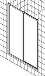 Zum Einbau in einer Nische und zur Kombination mit Seitenwand AQSW++. Gerahmte Tür mit einem Schiebesegment und einem Festfeld, nach einer Seite öffnend. Verstellmöglichkeit je Wandprofil 35 mm. Durchgehende Magnetleisten und Dichtprofile. Mit Bodenprofil, Höhe 33 mm. Höhe 190 cm