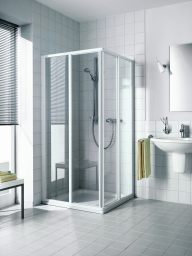 Kermi Duschdesign IBIZA 2000 Eckeinstieg 2-teilig (Gleittüren) – HalbteilKompletter Eckeinstieg besteht aus zwei Halbteilen I2 ED2 Eckeinstieg 2-teilig (Gleittüren).Halbteile unterschiedlicher Breite beliebig kombinierbar.Größere Einstiegsbreite durch Kombination mit I2 EF2 Eckeinstieg 2-teilig (Falttür) Halbteil.Kombination I2 ED2 Eckeinstieg 2-teilig (Gleittüren) und I2 ED3 Eckeinstieg 3-teilig (Gleittüren) nicht möglich.Gerahmter Eckeinstieg mit zwei Gleittürsegmenten, je nach einer Seite öffnend, mit zwei Festfeldern.Verglasung 3 mm Einscheiben-Sicherheitsglas nach EN 12150-1, optional mit Pflegeleicht-Beschichtung CLEAN.Profile und Griffleisten aus hochwertigem eloxiertem Aluminium.Verstellmöglichkeit im Wandprofil 22 mm.Durchgehende Magnetleisten und Dichtprofile.Mit Bodenprofil (Höhe 32 mm).IBIZA 2000 erfüllt die Anforderungen der Spritzwasserschutzprüfung nach DIN EN 14428.Im Lieferumfang enthalten: Befestigungsmaterial.Made in Germany.Geprüft nach DIN EN 14428 (CE).20 Jahre Ersatzteil-Nachkaufsicherheit nach Auslauf des Modells.Qualitätssicherungssystem zertifiziert nach DIN EN ISO 9001:2015.Umweltmanagement zertifiziert nach DIN EN 14001:2015.Energiemanagement zertifiziert nach DIN EN 50001:2011.