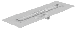 Rinnenkörper aus Edelstahl, 1.4301, chemisch gebeizt, waagerechter Ablaufstutzen DN 50 mit herausnehmbarem 2-teiligem Geruchverschluss aus Kunststoff Sperrwasserhöhe 25 mm mit umlaufendem Flansch für alternative Abdichtungsstoffe und einer werkseitig angebrachten Dichtmanschette Rinnenkörper mit seitlichem Gefälle und Sickeröffnungen Inklusive Befestigungsmaterial und höhenverstellbaren Montagefüssen Rinnenbreite: 70 mm Rinnenhöhe: 68 mm Höhe Fliesenrahmen: 12 mm Einbauhöhe von 56mm bis 128mm Oberkante Estrich Ablaufleistung : 0,62 l/s bei DN40/DN50 (mit 20 mm Aufstau) Passender Ersatz-Geruchverschluss ACO90108369 Easy Stop (Geruch- und Rauchstopp) ACO90107923