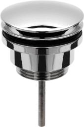 Design-Ablaufventil 1 1/4″ für Becken ab Wandstärke 0,1 mm (z. B. Glaswaschtische), verschließbar durch Druckverschlussstopfen, rund, Ø Druckverschlussstopfen 66 mm, inkl. Dichtelemente, inkl. Design-Befestigungsstück, inkl. Simplex-Schraube zur Verbindung Ventilkelch / Design-Befestigungsstück
