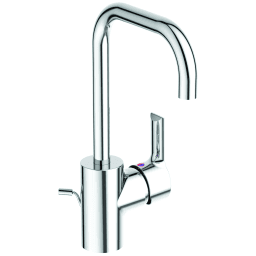 mit hohem Auslauf, DN 15, mit 120° schwenkbarem Rohrauslauf und Luftsprudler, mit Zugknopf-Ablaufgarnitur 5/4″, Ausladung: 160 mm, Auslaufhöhe: 229 mm, Bedienungshebel aus Metall, Schnellbefestigung: von unten (EASY FIX), flexible Anschlussschläuche G 3/8, Kartusche: mit keramischen Dichtscheiben, Kartuschenübersetzung aus Edelstahl, Schwenkbereich 90°, mit integriertem Fettreservoir (lebensmittelverträglich), mit integriertem Temperaturbegrenzer, Lebensdauertest: EN 817, Geräuschverhalten: DIN 4109, Gruppe I Passende Ersatzkartusche ISA861156/A861156