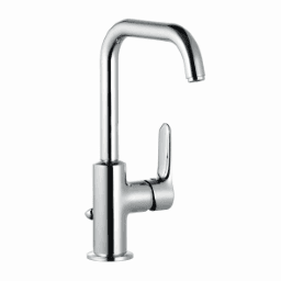 Waschtischarmatur Hersteller KLUDI GmbH&Co. KG KLUDI OBJEKTA Art. Nr. 320230575 Ausführung wie folgt: Waschtisch-Einhandmischer DN 15 / PN 10 mit schwenkbarem Auslauf 360 Grad aus Messing verchromt mit Ablaufgarnitur G 1 1/4 Zugstange und Zughebel verchromt geschlossener Hebel aus Metall verchromt mit seitlicher Betätigung, Keramik-Kartusche K-25 Strahlregler M 18 x 1 Durchflussmenge 4,5 l/min bei 3 bar flexible Anschlusse G 3/8 mit Metallummantelung mit DVGW / W270 Zulassung Schnell-Montagesystem Abmessungen: Höhe gesamt: 266 mm Auslaufhöhe: 201 mm Ausladung: 152 mm Ausladung Hebel: 75 mm