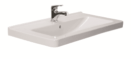 85 x 48,5 cm, aus Sanitärkeramik, mit einem Hahnloch in der Mitte, mit Überlauf, Befestigung mit handelsüblicher Waschtisch-Befestigung