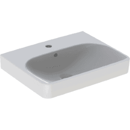 55 x 44 cm, Material: Sanitärkeramik, mit Hahnloch, mit Überlauf, eckiger Waschtisch mit schmalem Rand, Unterbaufähig, passende Halbsäule AQKEPRHS