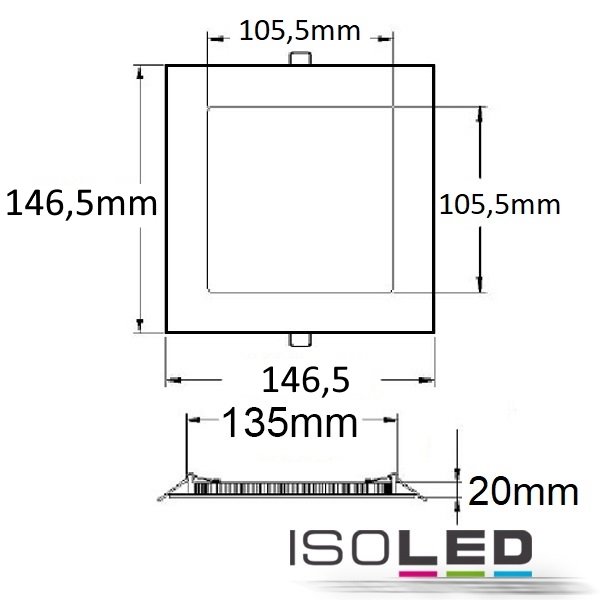 ISOLED 114904 LED Downlight, 9W, eckig, ultraflach, silber, neutralweiß, dimmbar