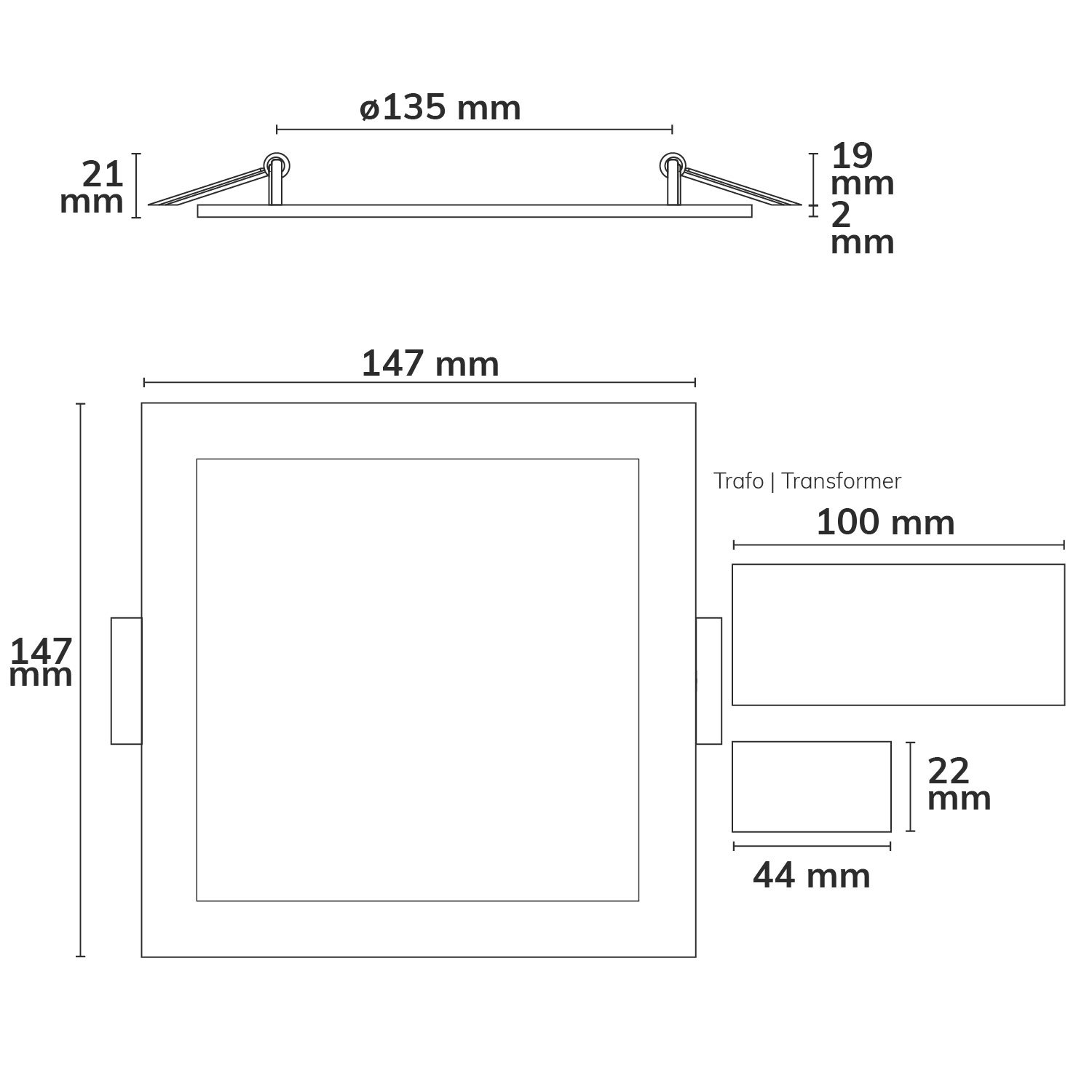 ISOLED 115460 LED Downlight, 9W, eckig, ultraflach, blendungsreduziert, weiß, warmweiß, dimmbar CRI90