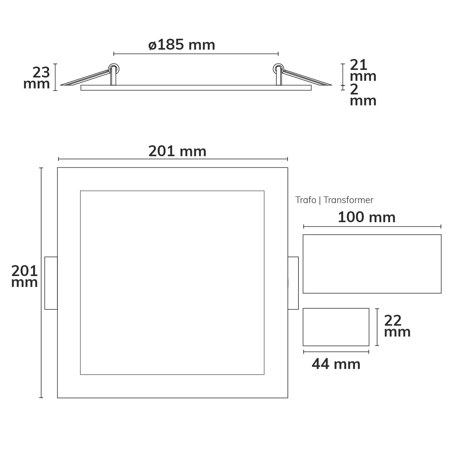 ISOLED 115466 LED Downlight, 15W, eckig, ultraflach, blendungsreduziert, weiß, warmweiß, dimmbar CRI90