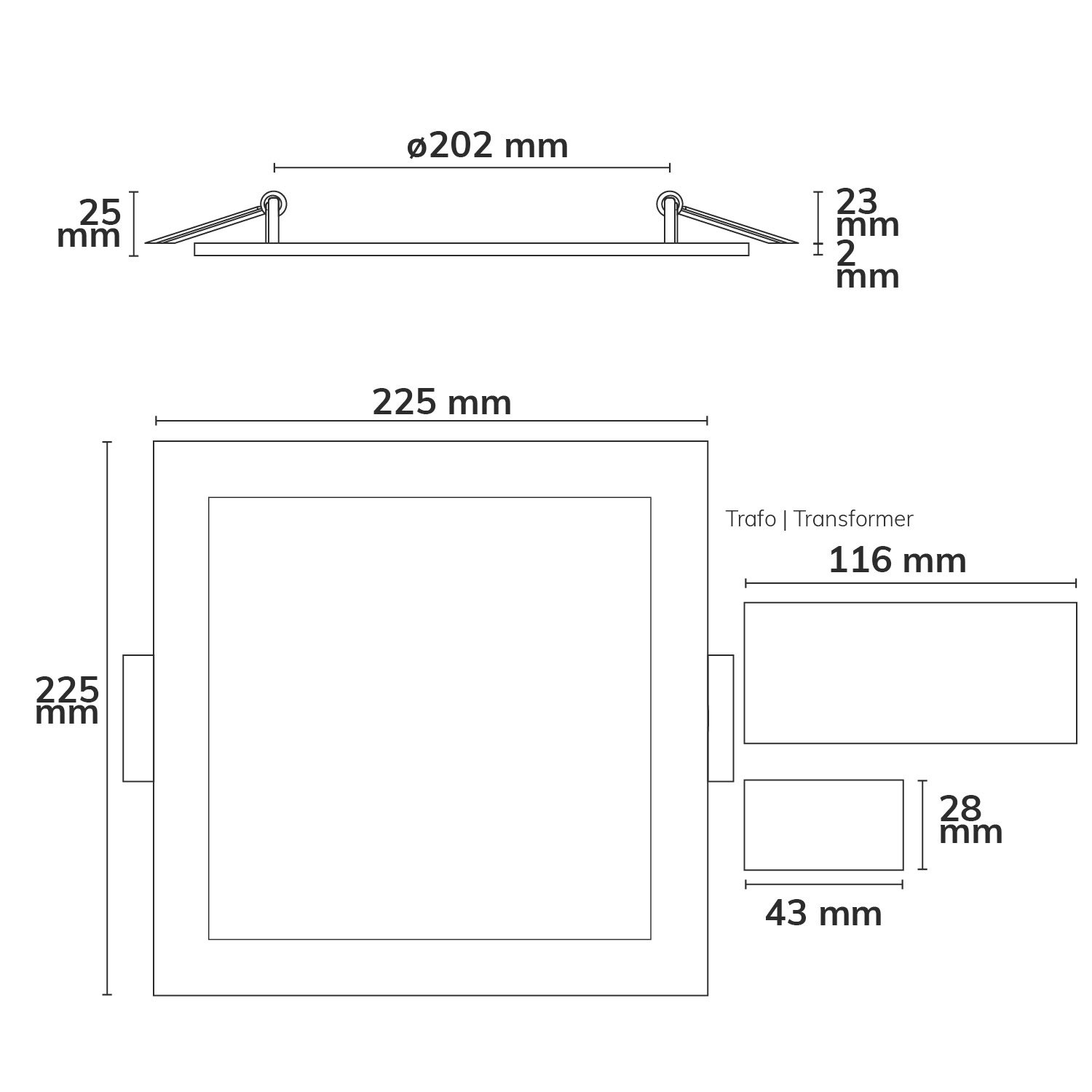 ISOLED 115599 LED Downlight, 18W, eckig ultraflach weiß, 225x225mm, ColorSwitch 3000|3500|4000K, dimmbar