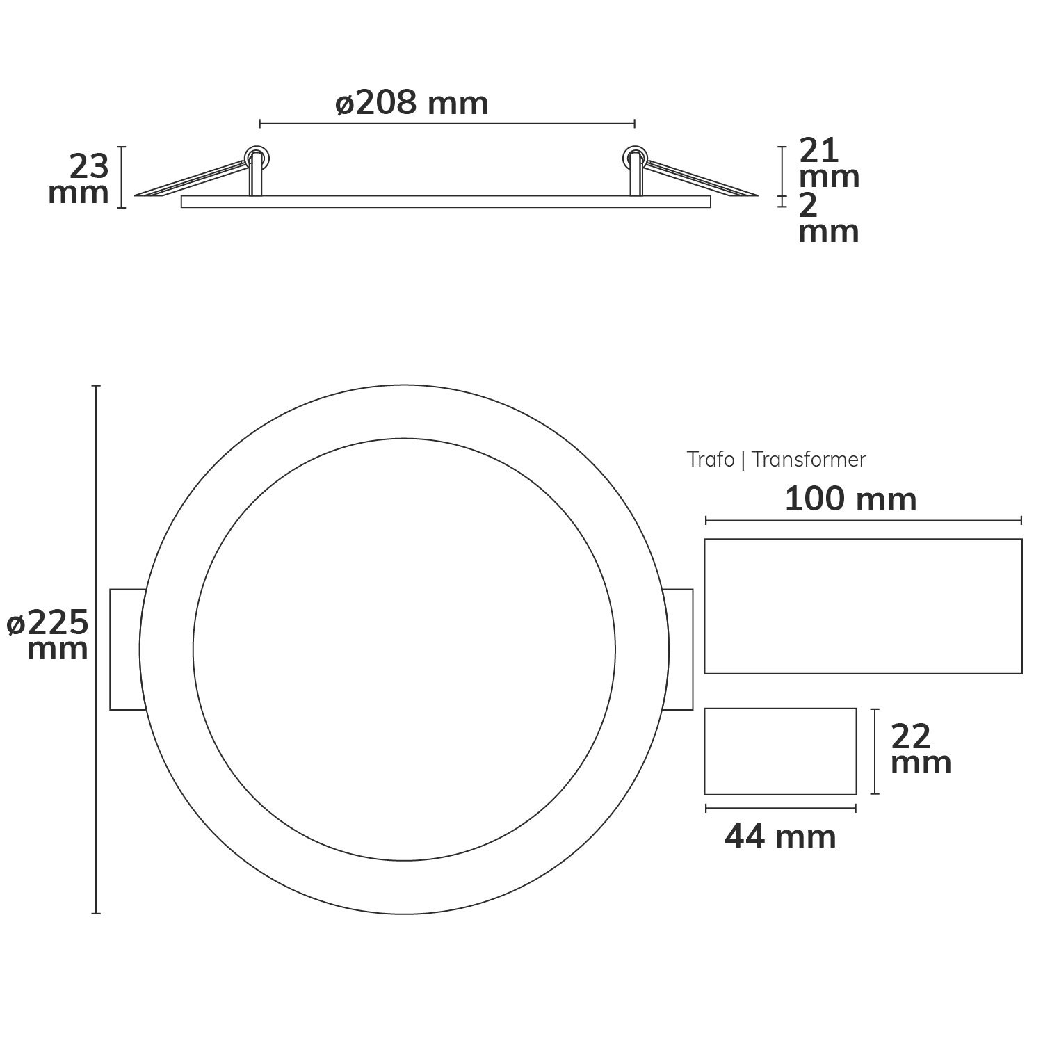 ISOLED 115469 LED Downlight, 18W, rund, ultraflach, blendungsreduziert, weiß, warmweiß, dimmbar CRI90