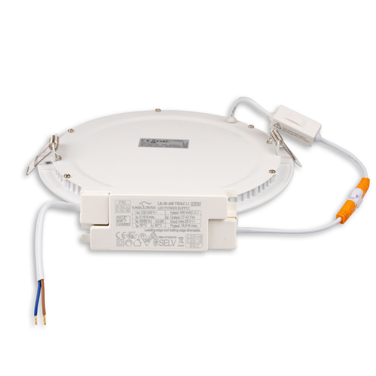 ISOLED 115595 LED Downlight, 18W, rund ultraflach weiß, 225mm, ColorSwitch 3000|3500|4000K, dimmbar