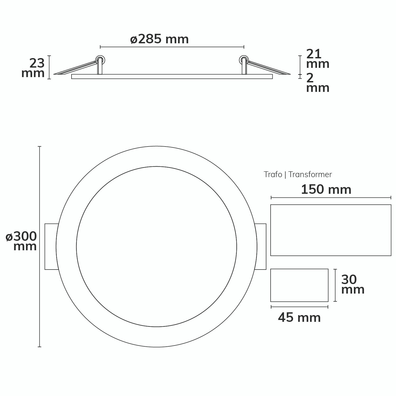 ISOLED 115598 LED Downlight, 24W, rund ultraflach schwarz, 300mm, ColorSwitch 3000|3500|4000K, dimmbar