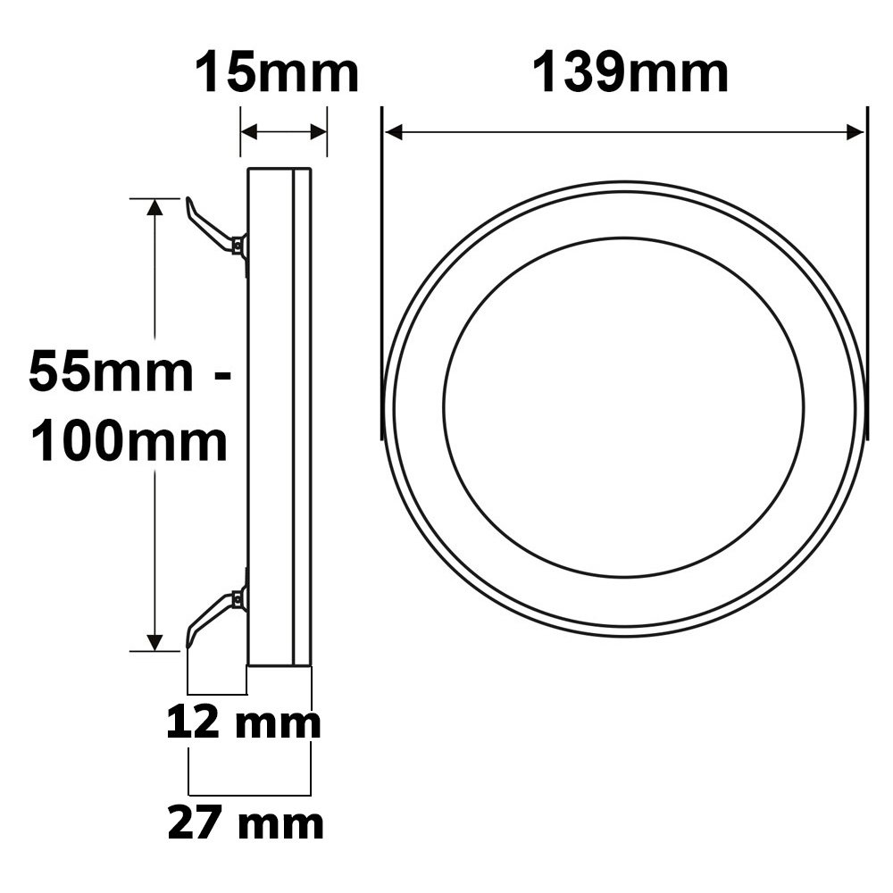 integrierter Driver, hält mittels verstellbaren Federklammern in einem variablen Lochausschnitt von mind. 55mm bis max. 100mm, bei Aufbauinstallation Montagebügel an den beiden äußersten hierfür vorgesehenen Bohrlöchern an der Decke montieren. Weiterverkabelung nicht möglich, von Leuchte zu Leuchte.
