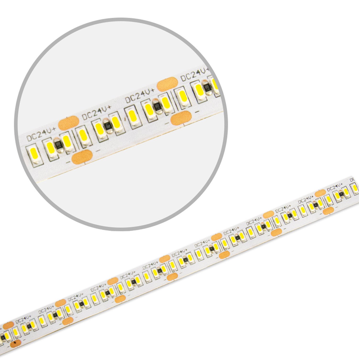 Dieser flexible Lichtstreifen ist für den Einsatz im Innenbereich konzipiert und verfügt über einen festen Abstrahlwinkel von 120°. Er ist dimmbar via PWM und hat eine Farbtemperatur von 3000 Kelvin. Die Platine ist mit weißem Lötstopplack beschichtet und das Produkt hat eine hohe Lichtleistung von 108 Lumen pro Watt. Die Farbwiedergabe ist sehr naturgetreu mit einem CRI von >92. Die sinnvoll nutzbare Lebensdauer beträgt 78000 Betriebsstunden und das Produkt ist als Lagerartikel verfügbar.