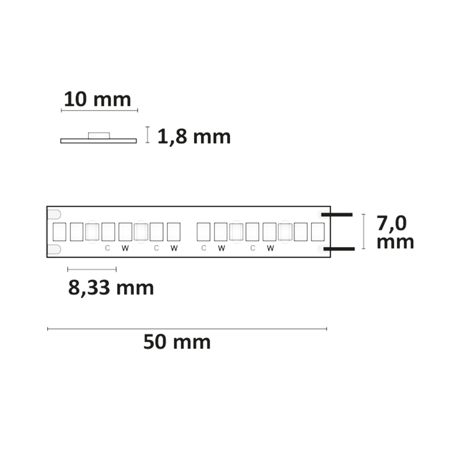 Trennstelle: 50mm mit je 12 SMD | Pitch (Lichtpunkt Mitte-Mitte): 8,34mm | 1 Einheit (Rolle) = 5m | max. Flexbandlänge pro Einspeisung: 5m | Längentoleranz + Wärmeausdehnung: 1% | erforderliche Kühlmasse min. 75 gr/m | inkl. 3M VHB Klebeband | Untergrund vor dem Ankleben reinigen und entfetten! Nicht wieder ablösen! | Es passen die Verbinder der Gruppe: C2-210 / K2-210 | Anschlusskabel beidseitig mit maleAMP, Aderquerschnitt 0,5mm²