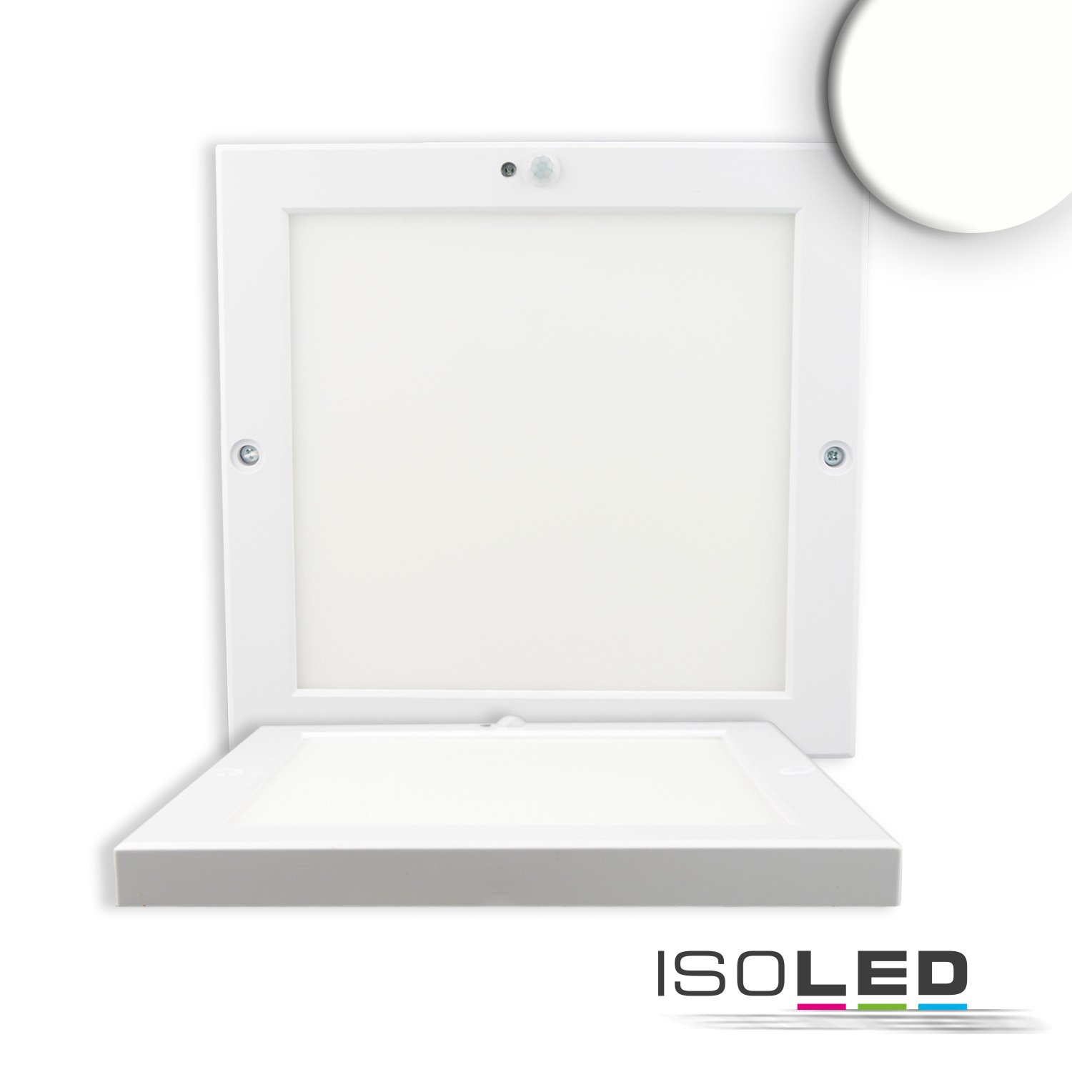 ISOLED 115105 Deckenlampe Slim eckig weiß, 220x220mm, mit PIR-Bewegungssensor, 18W, Trafo integriert, neutralweiß