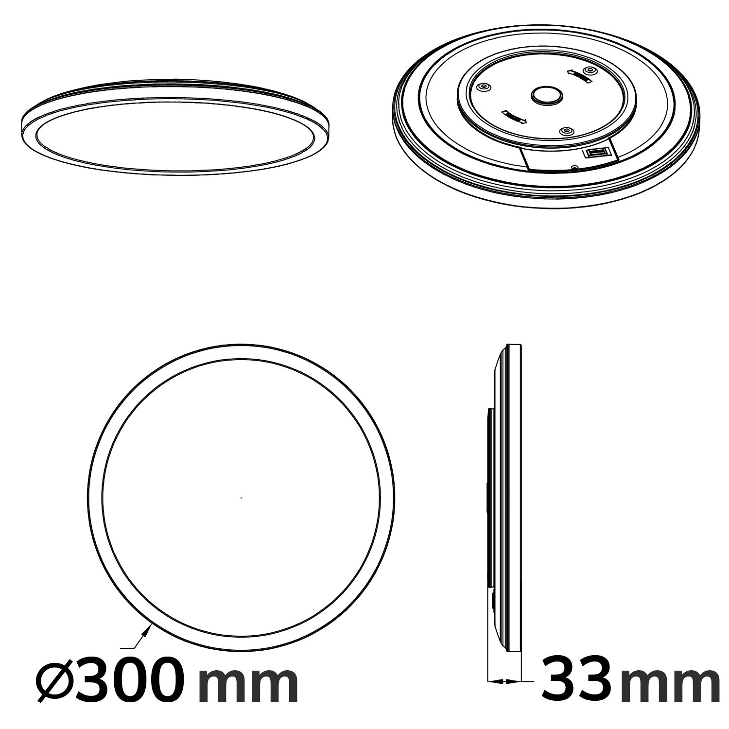 ISOLED 116713 LED Deckenleuchte Slim300 PRO, 18W, schwarz, rund, IP44, DN300, 3000|4000|5000K, Up&Down
