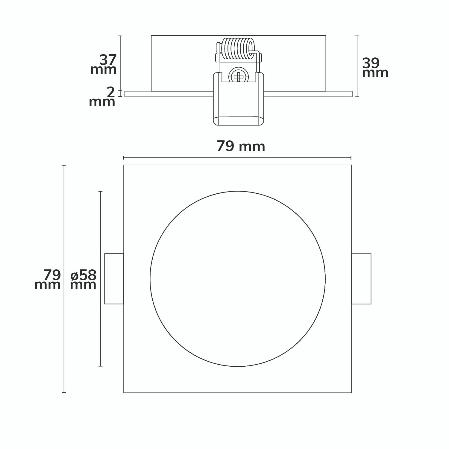 ISOLED 113128 Einbaurahmen eckig, Loch 58mm, Alu schwarz, für GU10/MR16 Spots