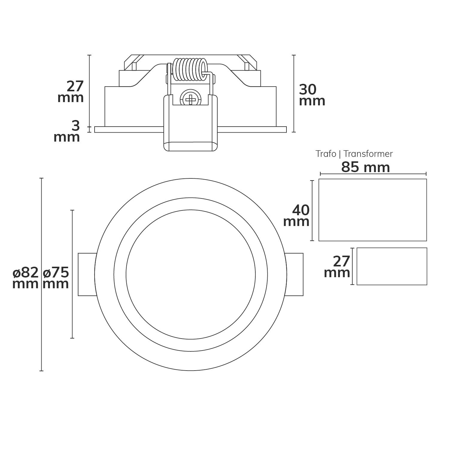ISOLED 112050 LED Einbaustrahler, silber, 8W, 72°, rund, warmweiß, dimmbar