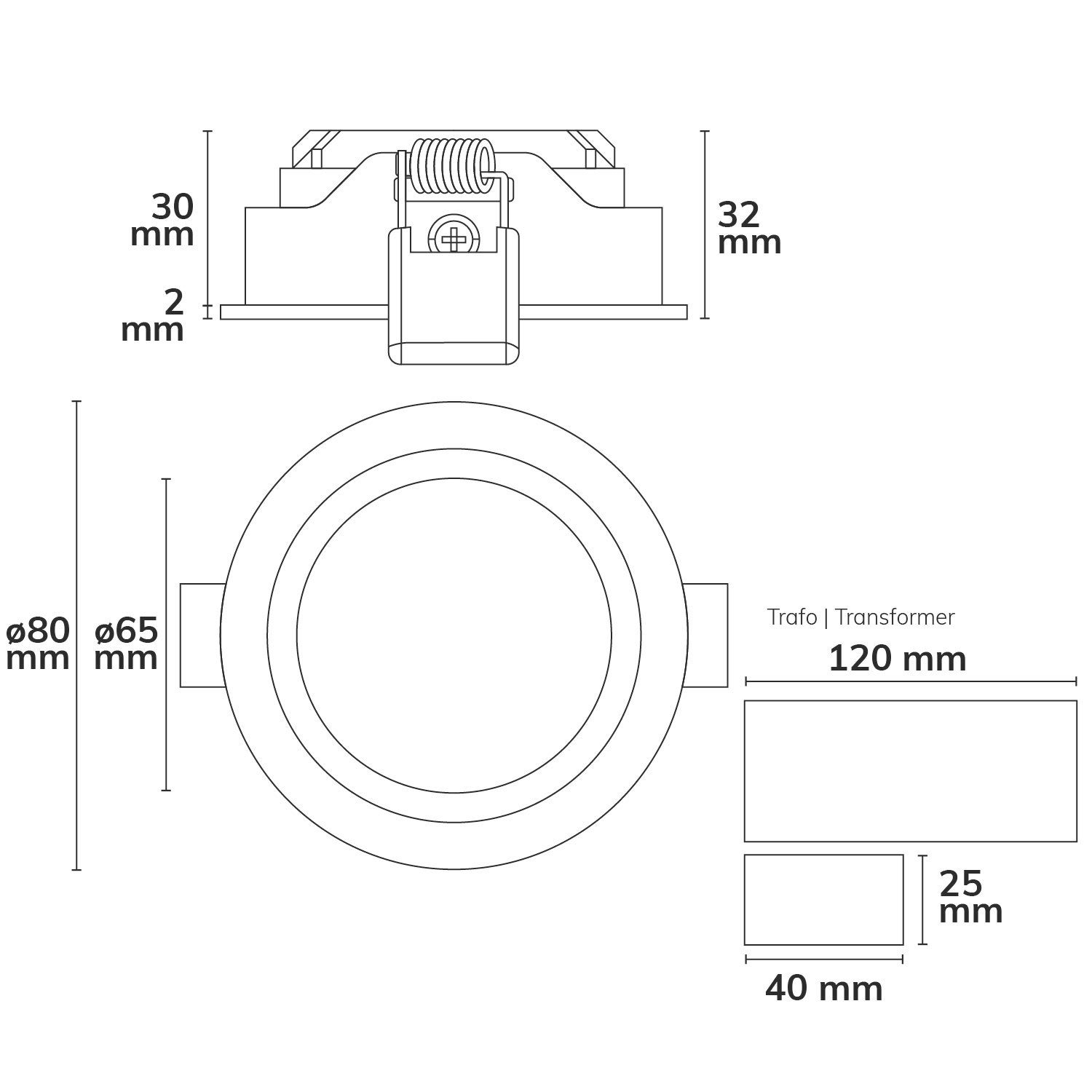 Bis zu 30° schwenkbar, Abmessungen Trafobox: 117x40x25mm inkl. zur Weiterverdrahtung geeignete Schnellsteck-Anschlussklemme und Zugentlastung