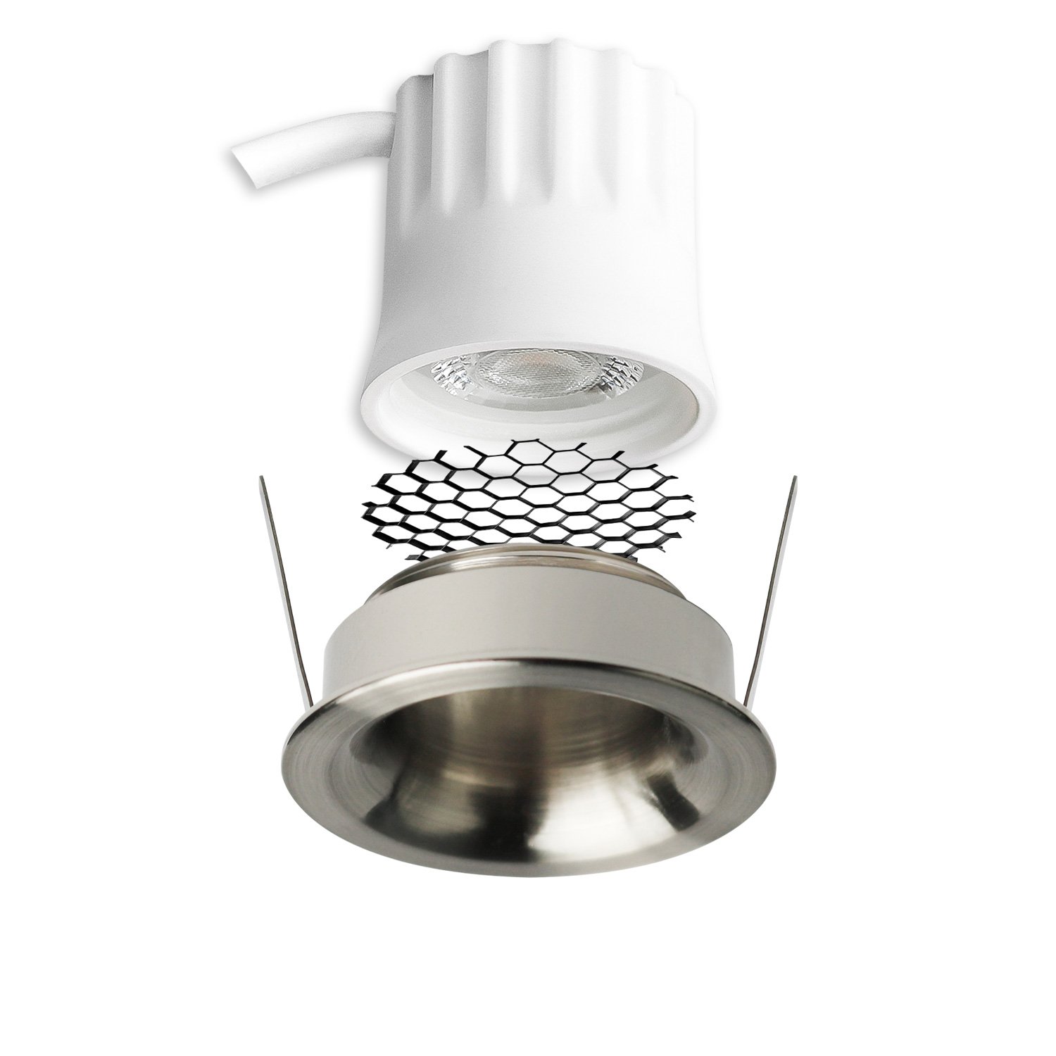 ISOLED 117250 LED Einbaustrahler BACK32, nickel geb., rund, 5W, CRI90, 2700K, rückversetzt, Honeycomb, dimmbar