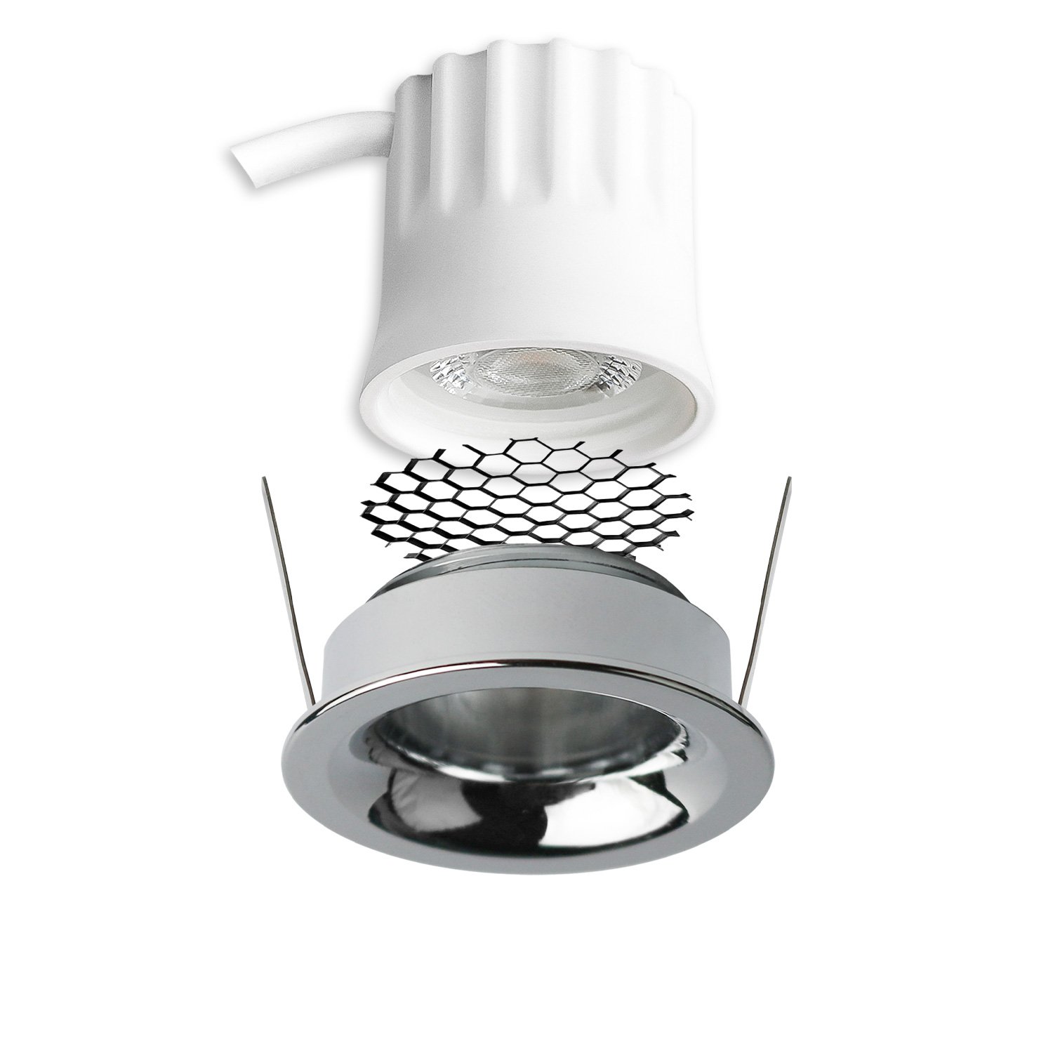 ISOLED 117253 LED Einbaustrahler BACK32, alu glänzend, rund, 5W, CRI90, 3000K, rückversetzt, Honeycomb, dimmbar