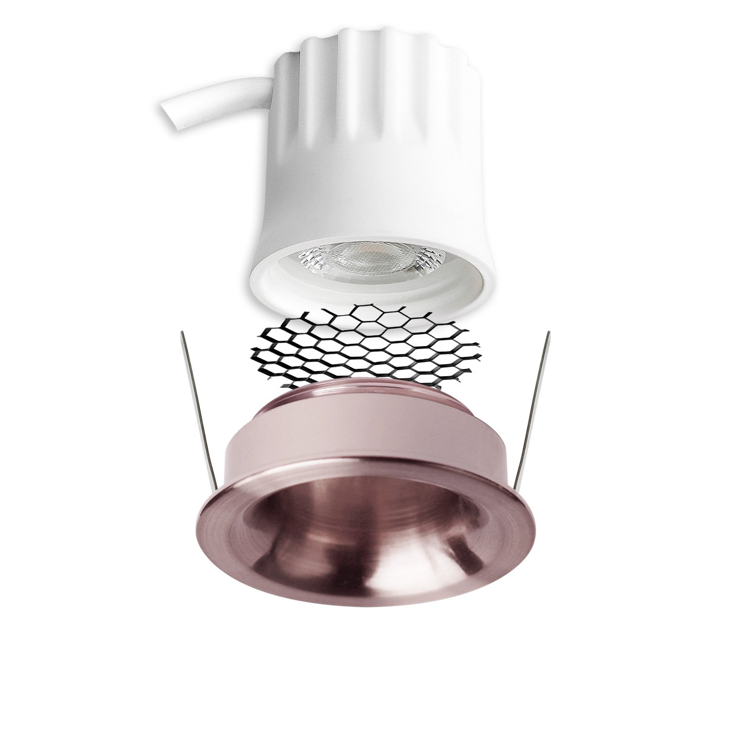 ISOLED 117256 LED Einbaustrahler BACK32, rosegold, rund, 5W, CRI90, 2700K, rückversetzt, Honeycomb, dimmbar