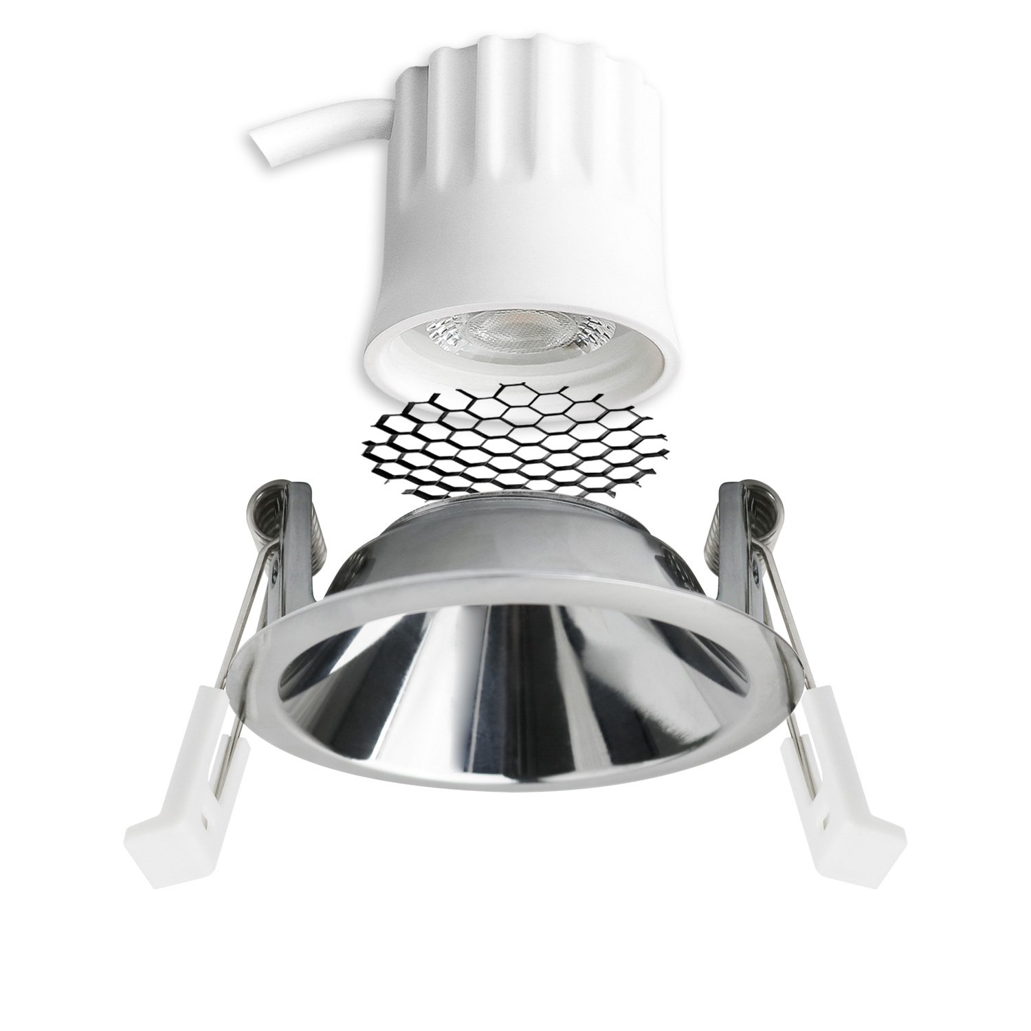 ISOLED 117274 LED Einbaustrahler BACK45, alu glänzend, rund, 5W, CRI90, 3000K, rückversetzt, Honeycomb, dimmbar