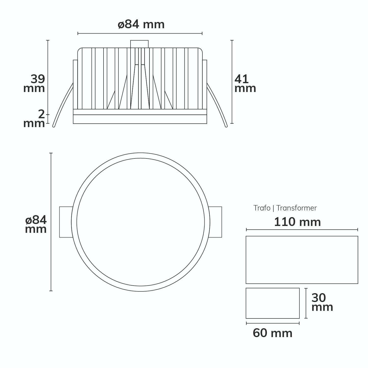 dimmbar via DALI Steuersignal sowie optional via Push-Schließtaster