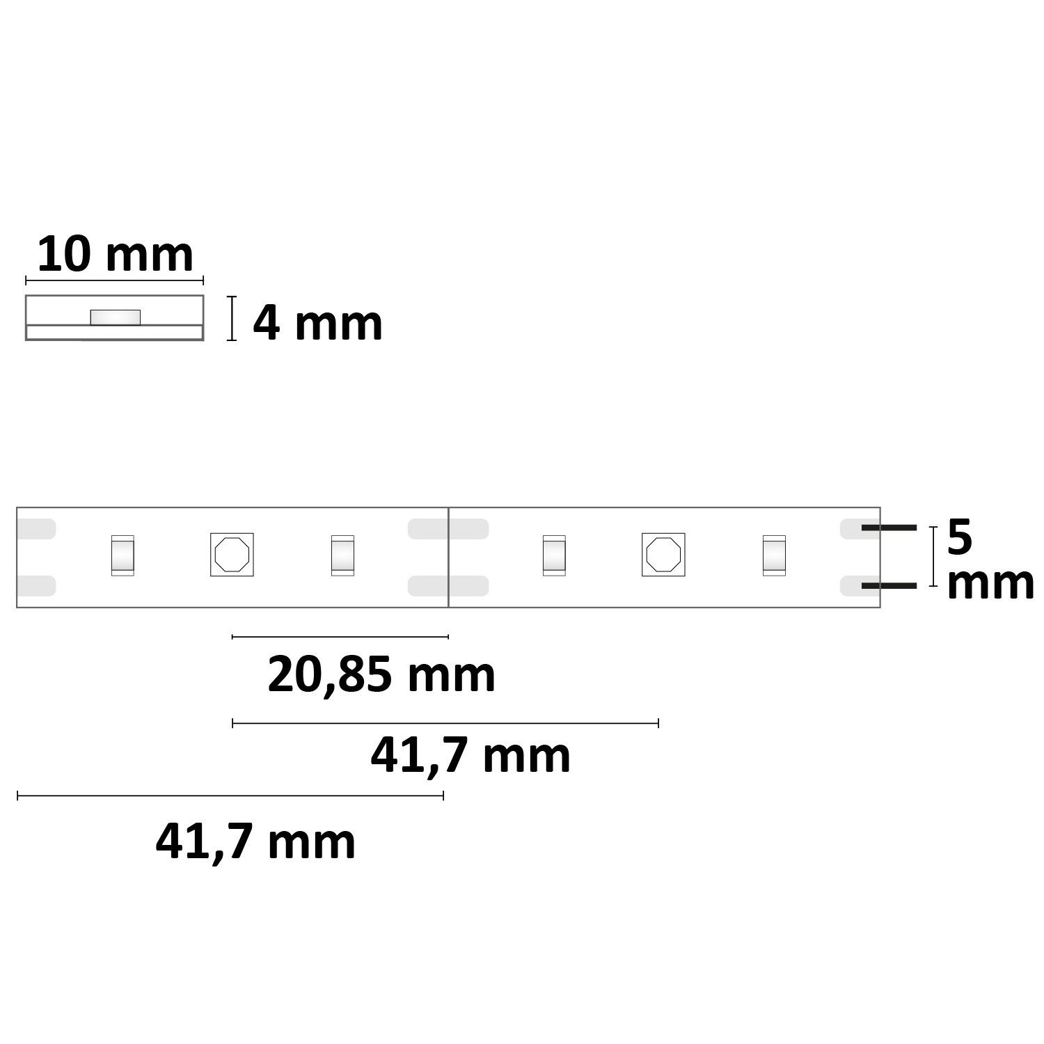 Trennstelle: 27mm mit je 1 SMD | Pitch (Lichtpunkt Mitte-Mitte): 83,33mm | 1 Einheit (Rolle) = 1,16m | Längentoleranz + Wärmeausdehnung: 1% | erforderliche Kühlmasse min. 45 gr/m | inkl. 3M VHB Klebeband | Untergrund vor dem Ankleben reinigen und entfetten! Nicht wieder ablösen! | Silikon Verguss | Anschlusskabel einseitig mit maleAMP , Aderquerschnitt 0,5mm²
