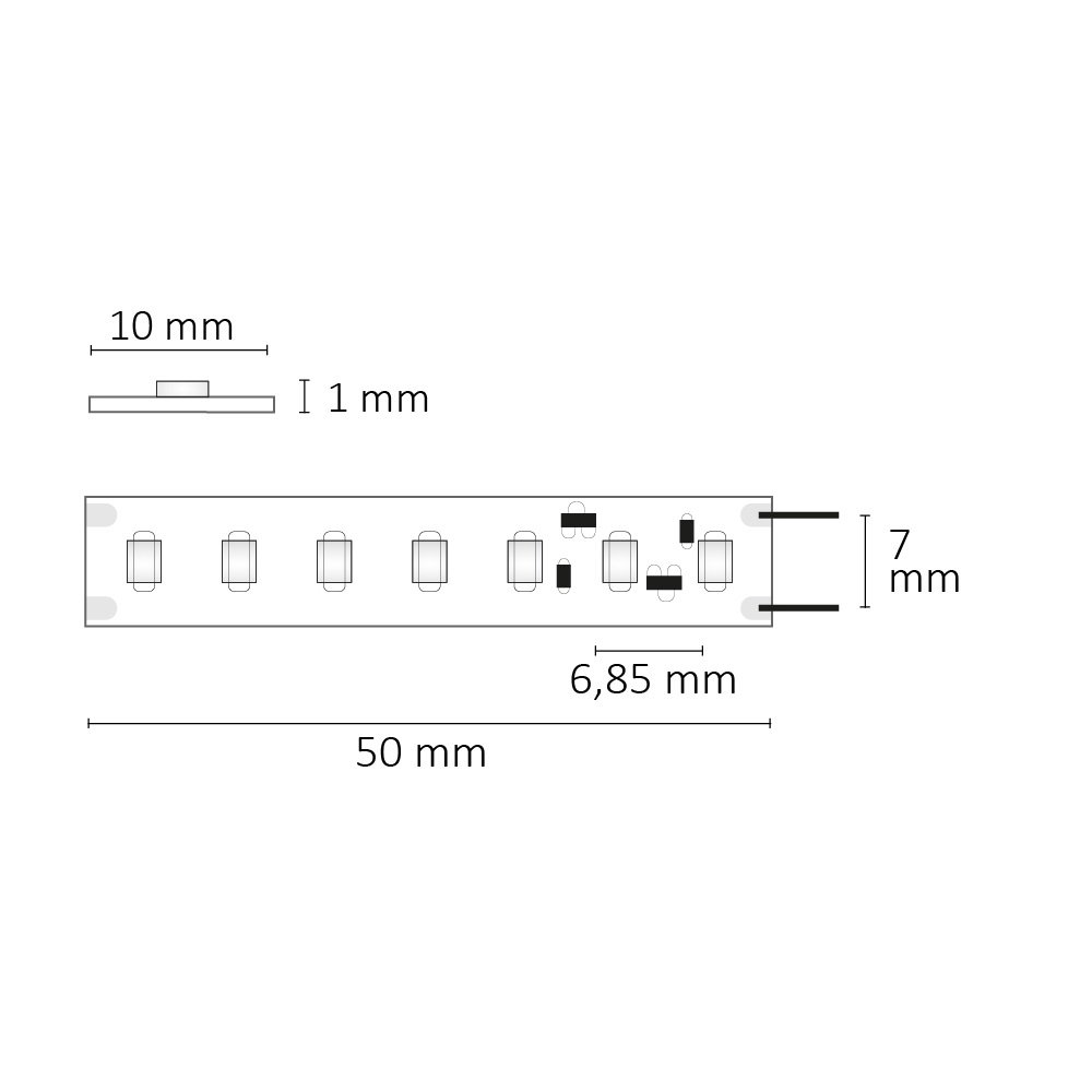 Trennstelle: 50mm mit je 8 SMD | Pitch (Lichtpunkt Mitte-Mitte): 6,25mm | 1 Einheit (Rolle) = 5m | max. Flexbandlänge pro Einspeisung: 5m | Längentoleranz + Wärmeausdehnung: 1% | erforderliche Kühlmasse min. 75 gr/m | inkl. 3M 9080A Klebeband | Untergrund vor dem Ankleben reinigen und entfetten! Nicht wieder ablösen! | Es passen die Verbinder der Gruppe: K2-210 | BESONDERHEIT: Anschlusskabel beidseitig