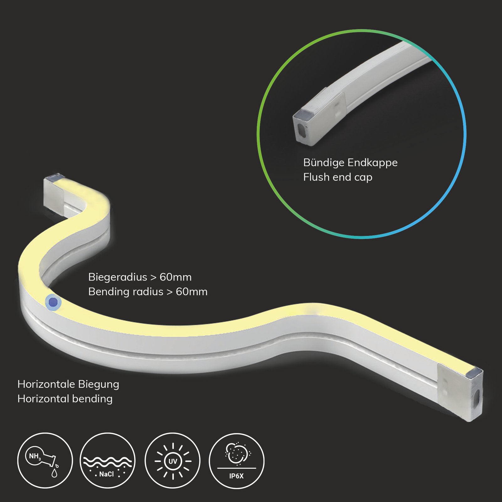 ISOLED 116299 LED NeonPRO940 Custom Flexband B04H08, 24V DC, 10W, IP67, 4000K, 5m Rolle, 180 LED/m, inkl. Clips