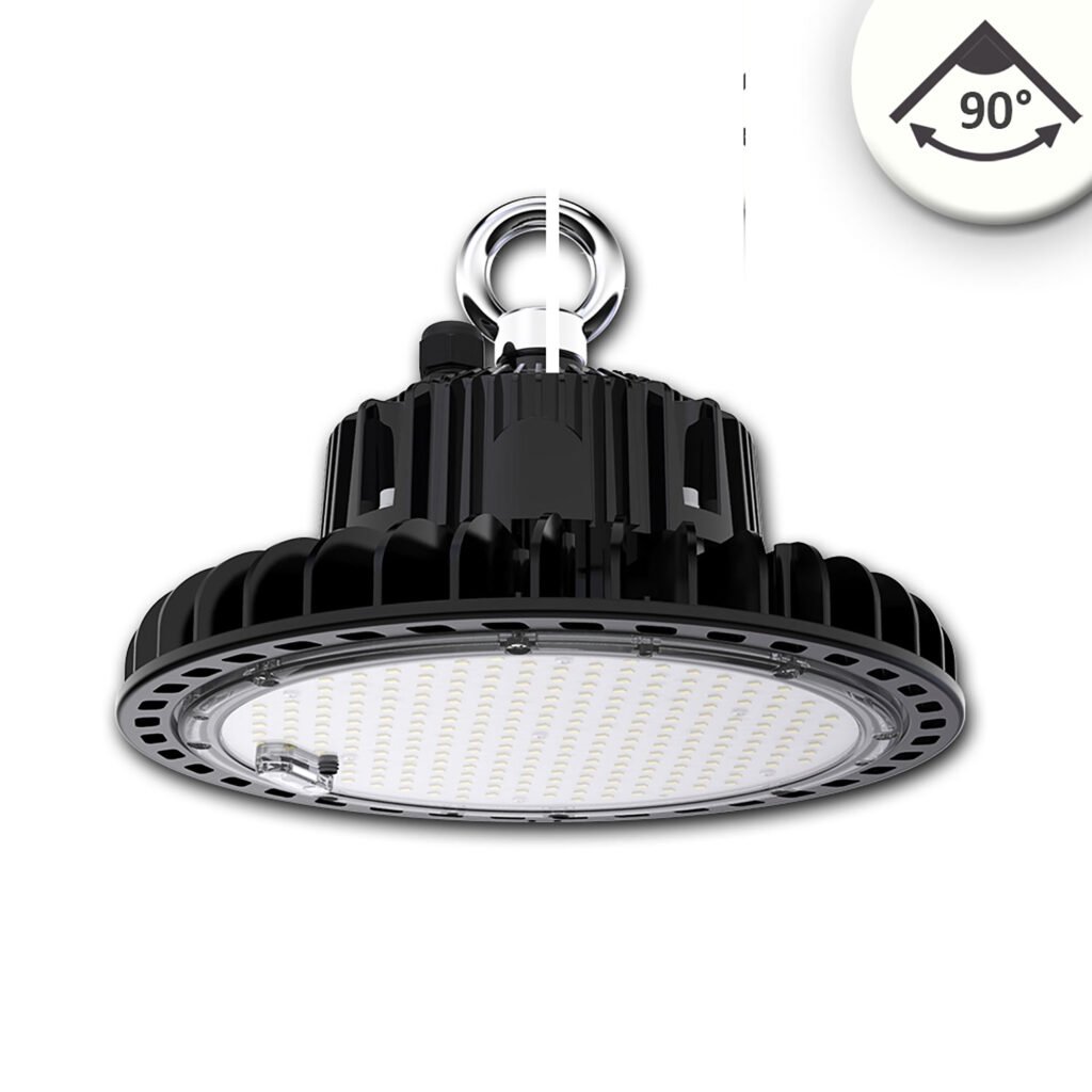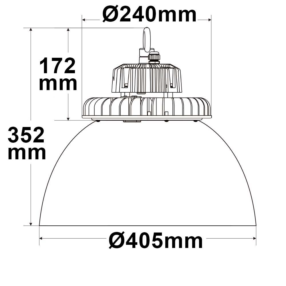 Die LED Hallenleuchte verfügt über ein externes, steckbares Vorschaltgerät und eignet sich sowohl für den Innen- als auch den Außenbereich. Sie ist besonders für feuergefährdete Betriebsstätten geeignet. Der Abstrahlwinkel beträgt fixe 70 Grad. Die Leuchte ist via 1-10V dimmbar und hat eine Farbtemperatur von 5700 Kelvin. Das Gehäuse ist transparent und besteht aus Aluminium/PC. Die hohe Lichtleistung beträgt 150 Lumen pro Watt. Die Leuchte ist geschützt gegen Eindringen von Insekten und Strahlwasser. Die s