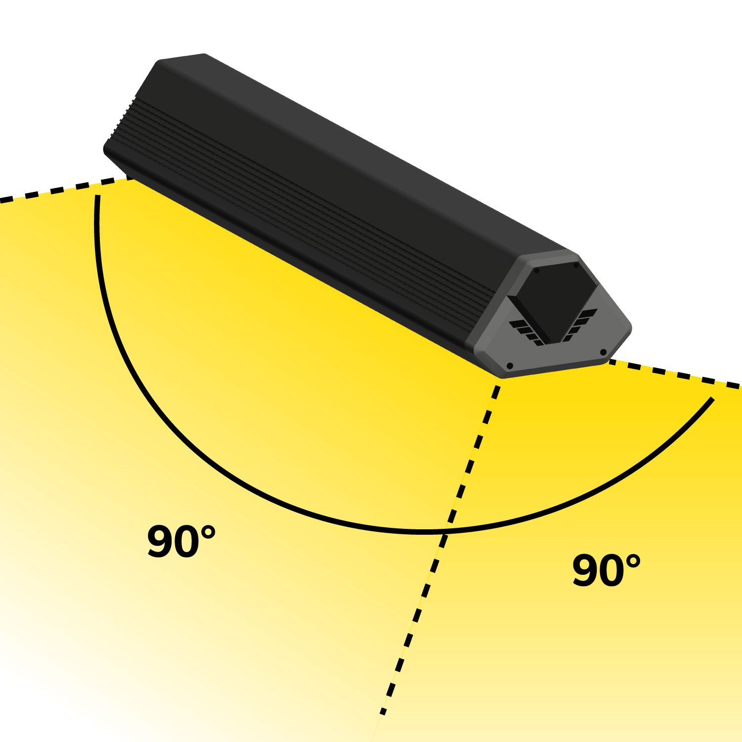 zwei 90° Montagewinkel zur Wand- oder Deckenbefestigung werden mitgeliefert