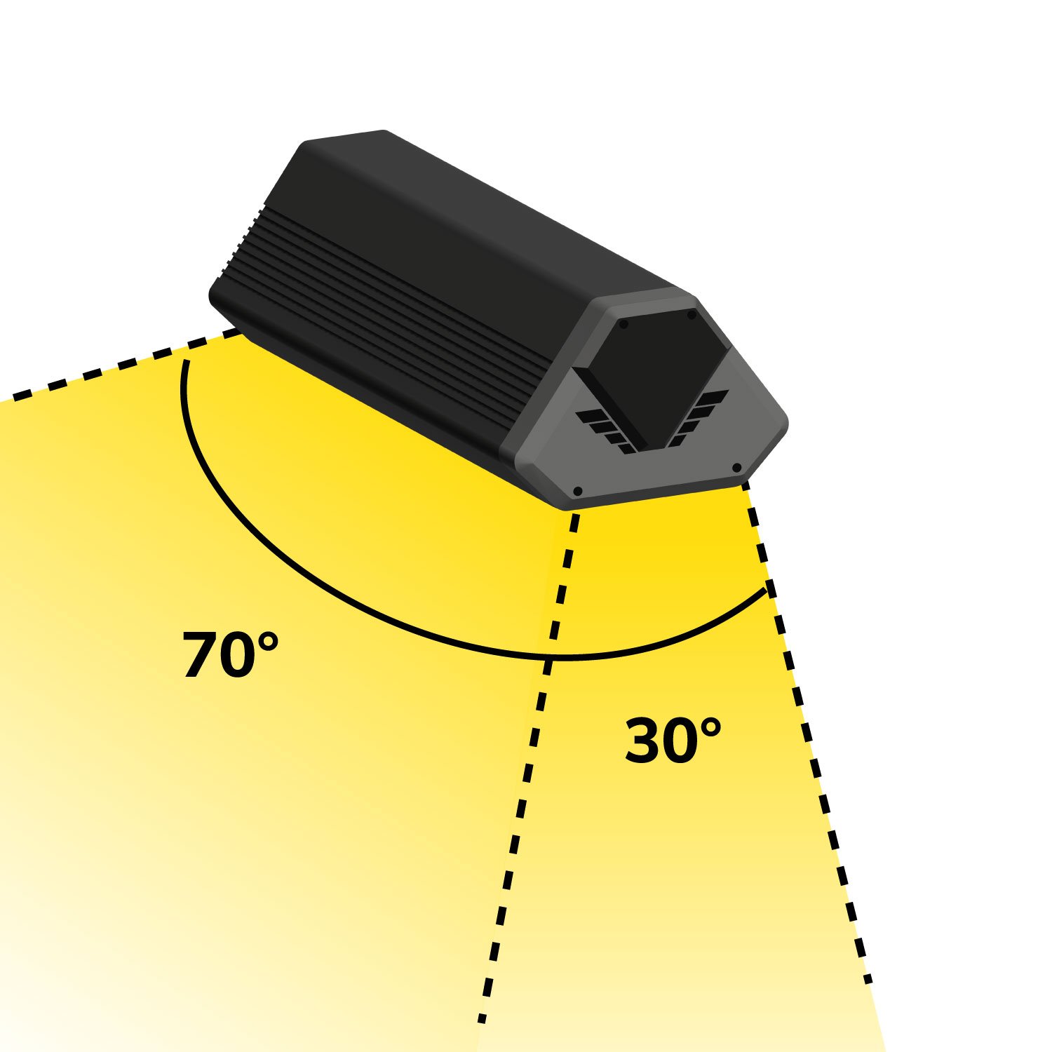 Diese LED Hallenleuchte eignet sich sowohl für den Innen- als auch für den Außenbereich. Mit einem horizontalen Abstrahlwinkel von 30° und einem vertikalen Abstrahlwinkel von 70° sorgt sie für eine gezielte Beleuchtung des gewünschten Bereichs. Die Helligkeit kann über eine 1-10V-Dimmfunktion individuell angepasst werden.Die Farbtemperatur beträgt 4000 Kelvin, was einem neutralweißen Licht entspricht. Das Gehäuse ist in elegantem Schwarz gehalten und besteht aus Aluminium. Dabei ist die Leuchte auch gegen d