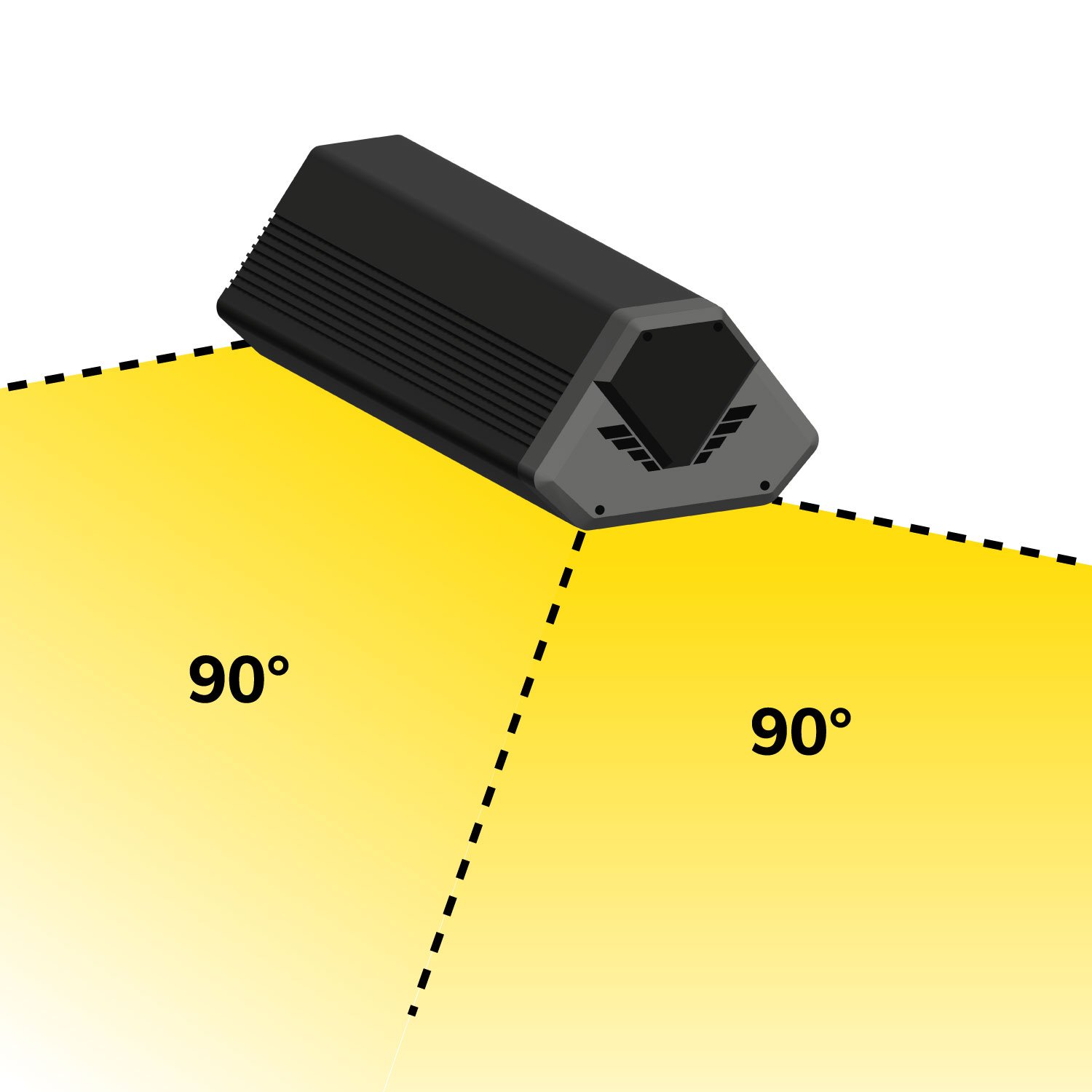 zwei 90° Montagewinkel zur Wand- oder Deckenbefestigung werden mitgeliefert