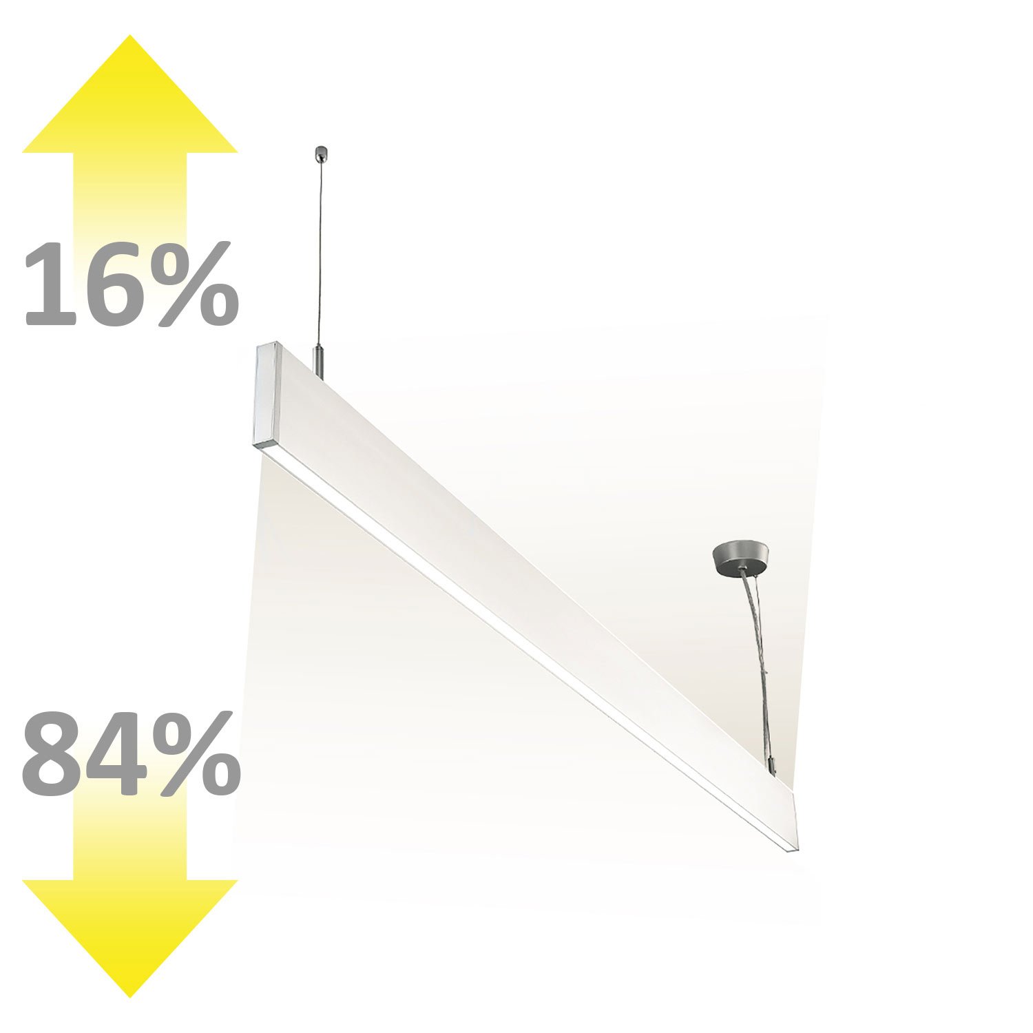 Lichtstrom nach unten: 1600lm, Lichtstrom nach oben: 300lm, Linearverbinder beiliegend, die Leuchte ist aktuell mit einem satinierten Cover bestückt – das prismatische Cover liegt bei