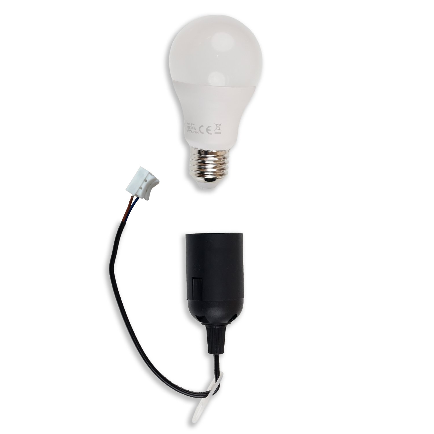 ISOLED 116421 Baufassung E27 SET mit Federklemme, Öse und LED bulb 9W, warmweiß