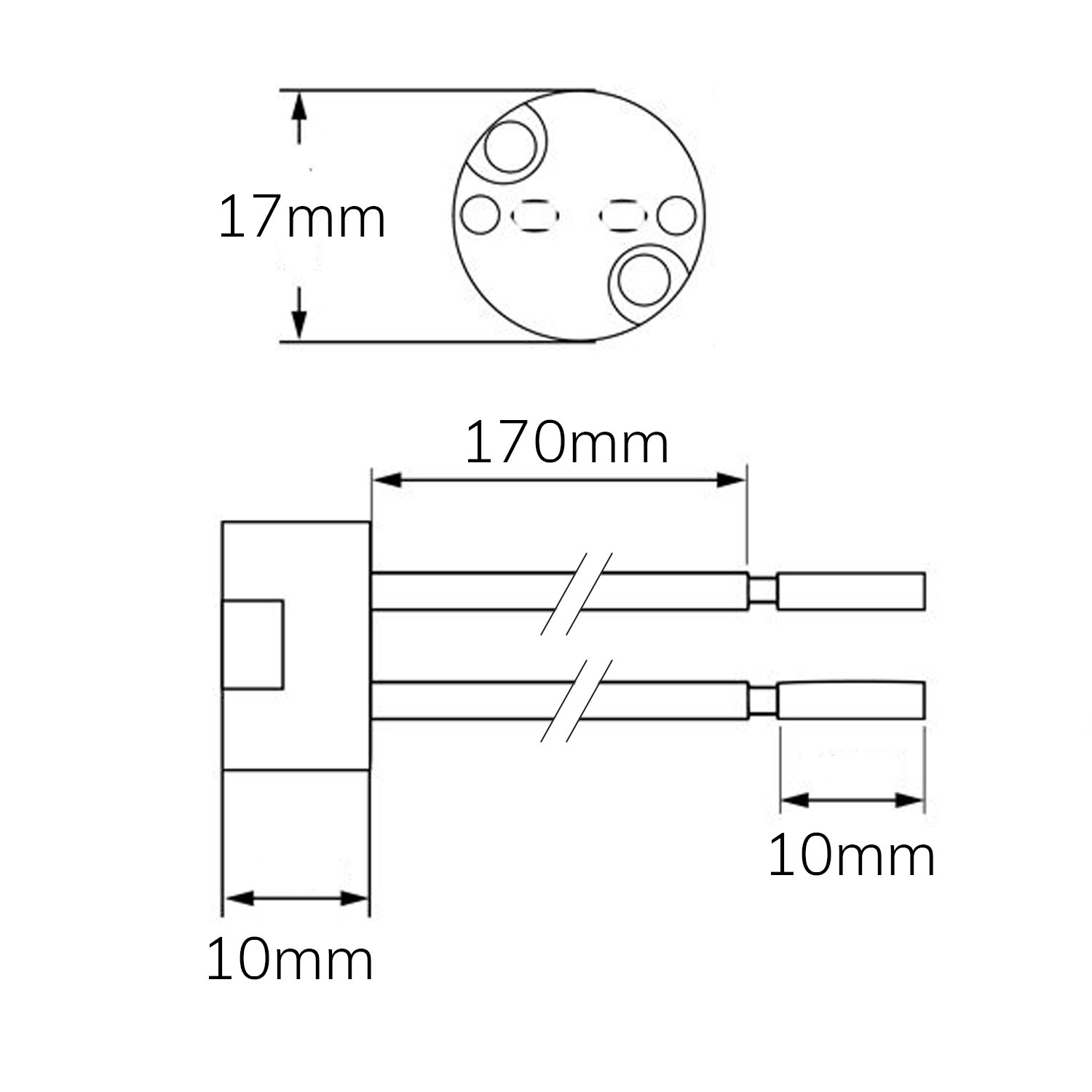 inkl. 80mm isolierte Anschlussleitung, 2 Löcher zur Schraubbefestigung