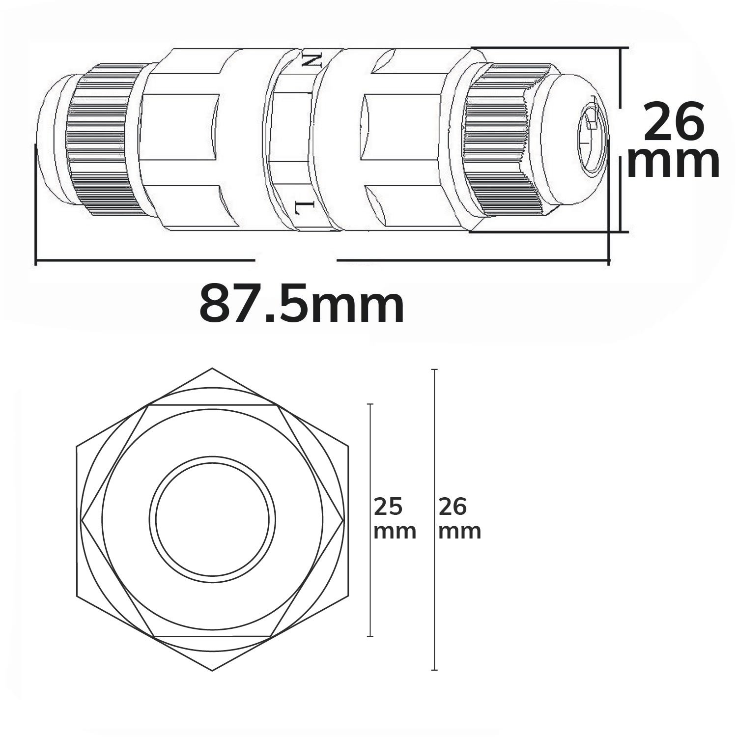 ISOLED 116445 Kabelverbinder IP67, 3-polig 0.75-2.5mm² mit Federklemme, max. 250V 16A, Manteldm. 6.5-11mm