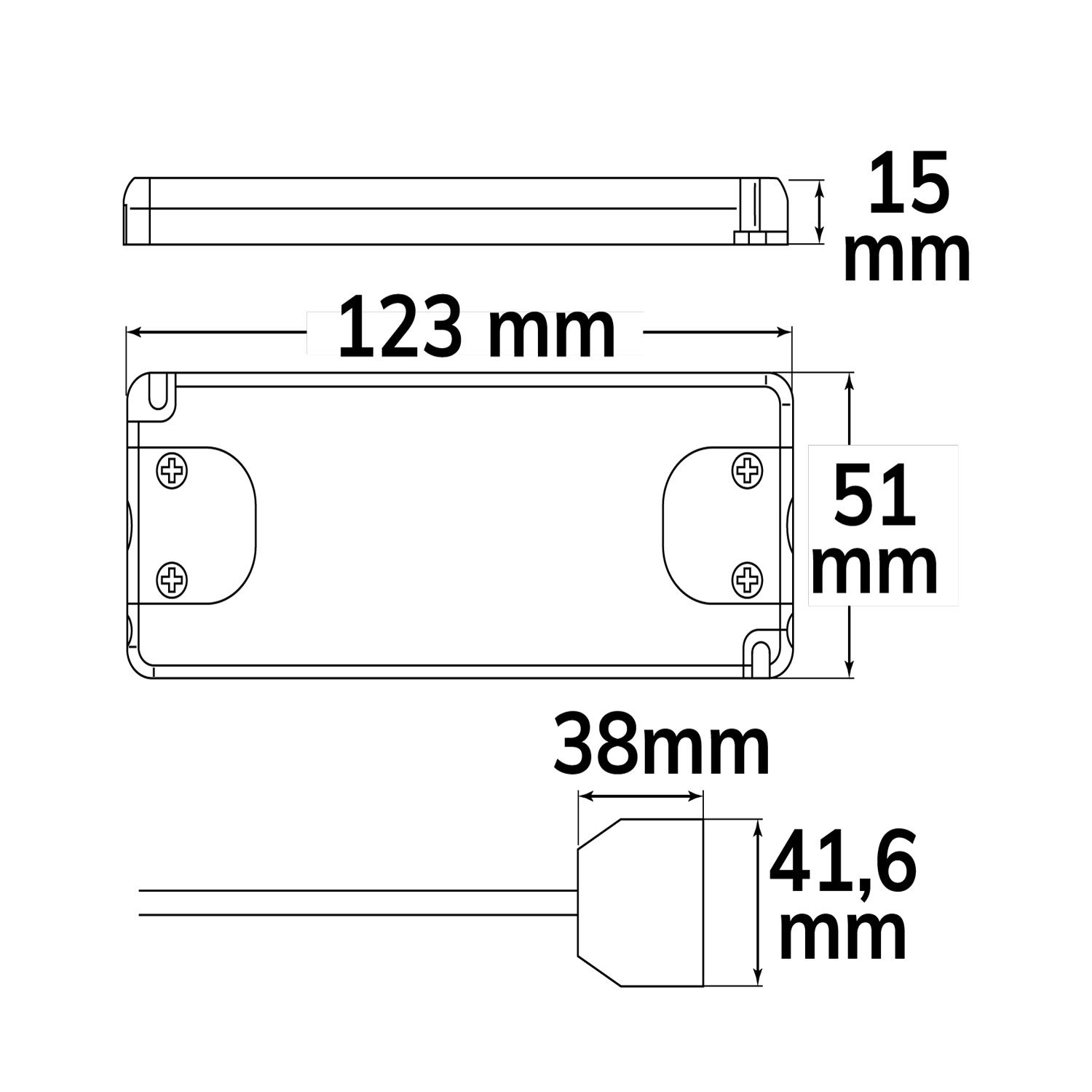 ISOLED 112355 LED Trafo MiniAMP Slim 12V/DC, 0-15W, inkl. Flachstecker und 4fach Mini AMP-Verteiler
